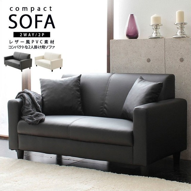 リビングに、大人のこだわり。 お部屋がキリッと引き締まるのは何と言ってもブラック。落ち着いた佇まいに、心が安らぎます。 清潔感あふれるアイボリーは、ナチュラル派のお部屋にもシャープなインテリアにも合わせやすい色。カフェっぽい雰囲気づくりにもぴったりです。 シンプルなデザインにさりげなく効かせたステッチがアクセント! ひとり暮らしだけどソファが欲しい!という方にオススメしたい、このサイズ感。 小ぶりだから省スペースに収まって、でも座り心地は意外とゆったり。 ひとりの時間を贅沢な癒しのひとときに変えてくれます。 もちろん、二人用にもジャストなサイズです。 生産地 中国 サイズ 【本体サイズ(約)】 幅113.5×奥行70×高さ62cm 座面高さ:34cm アームの高さ:45cm 【梱包サイズ(約)】 (1個口)115×70×45.5cm(約25.5kg) 素材 構造材:天然木・合板 表面:PVC(合成皮革) クッション材:ウレタンフォーム / ウェービングベルト(背)/ 連結式鋼製組バネ(座) 重量 約24.5kg 機能 ●要組立 ●同色クッション2個付 ●ロータイプとしても使用可能 ※この商品は基本送料無料です。 但し、北海道・沖縄・離島への配送には別途送料のお見積りが必要になります。ご注文前にお問い合わせ下さい。 ※説明画像には小物など商品以外のものも掲載しています。 ※通常3営業日以内で発送いたします。 ※お急ぎの場合は日時指定はせずにご注文ください。 可能な限りの最短発送いたします。