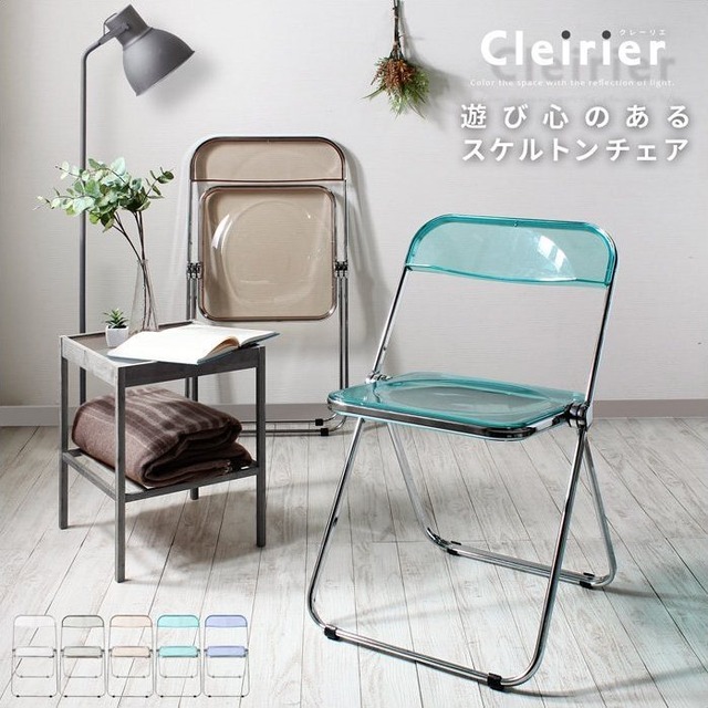 スケルトン折りたたみチェア cleirier クレーリエ sh81141 完成品 スケルトンチェア リビングチェア ダイニングチェア デスクチェア ワークチェア 折りたたみ式 シルバーフレーム ポリカーボネート クロームメッキ