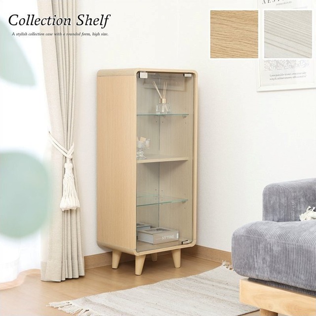丸みを帯びたフォルムがおしゃれなコレクションケース ミドル カラー ナチュラルオーク ホワイトウォッシュ 商品サイズ(mm) 全体:幅360 × 奥行265 × 高さ600 耐荷重(ガラス棚板):3kg 耐荷重(底板):5kg 商品重量(kg) 9 梱包サイズ 外箱1:幅670 × 奥行620 × 高さ100mm / 10.5kg 素材 ■本体:プリント紙化粧繊維板 ■棚板/扉部:強化ガラス ■背面ミラー:ガラス ■脚部:天然木 【組立てについて】 ・本品はお客様にて組立ての作業が必要となります。 ・商品の組立て開始前に、部材不足・破損がないか必ずご確認ください。 ・安全のために必ず2人以上で組み立てを行ってください。 ※この商品は基本送料無料です。 但し、北海道・沖縄への配送は有料、離島への配送には別途送料のお見積りが必要になります。ご注文前にお問い合わせ下さい。 ※説明画像には小物など商品以外のものも掲載しています。 ※通常2営業日以内で発送いたします。 ※お急ぎの場合は日時指定はせずにご注文ください。 可能な限りの最短発送いたします。