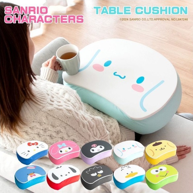 ※ハンギョドンは完売いたしました。 サンリオのキャラクターたちのお顔がデザインされたテーブルクッションが登場!使わないときも可愛さに癒やされるアイテムです。 ハローキティ、シナモロール、マイメロディ、クロミ、ポムポムプリン、ポチャッコ、タキシードサム、バッドばつ丸、けろけろけろっぴ、あひるのペックルとサンリオの人気キャラクターたちが勢ぞろい! 身体にフィットする天板と、もちふわマイクロビーズのクッションが一つになったテーブルクッションは本を読んだり、ノートパソコンやタブレット作業、テーブル面を下にして枕にしたり色々な用途にお使いいただけます♪ サイズ 幅46×奥行き35×高さ14cm 材質 張地:ポリエステル、天板:合成樹脂化粧合板(塩化ビニル) 中身:発泡ビーズ 重量 約1.5kg (C)2024 SANRIO CO.,LTD. APPROVAL NO.L647246 ※この商品は基本送料無料です。 但し、北海道・沖縄・離島への配送には別途送料のお見積りが必要になります。ご注文前にお問い合わせ下さい。 ※説明画像には小物など商品以外のものも掲載しています。 ※通常3営業日以内で発送いたします。 ※お急ぎの場合は日時指定はせずにご注文ください。 可能な限りの最短発送いたします。