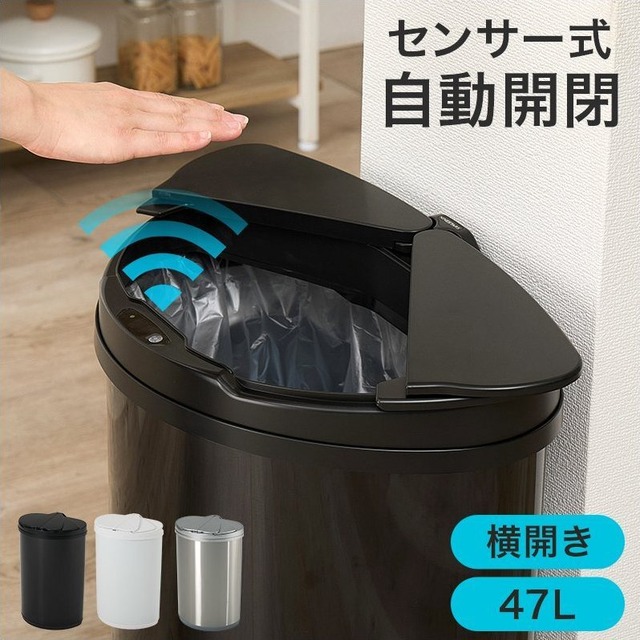 センサー付きゴミ箱 MG-5331 ごみ箱 センサー式自動開閉 横開き 47L リビングゴミ箱 電池式 ストッパー付き ステンレス製