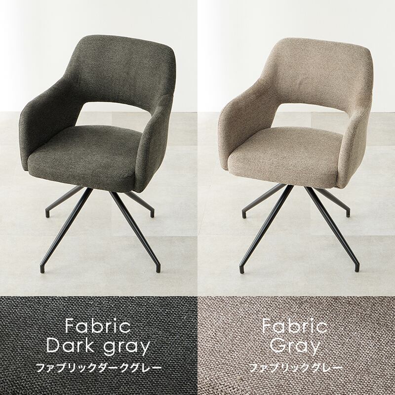 肘掛けが一体となった曲線が生み出すシルエットはダイニングやデスクなど多彩なシーンにフィットします。立ち座りがスムーズな回転チェアです。