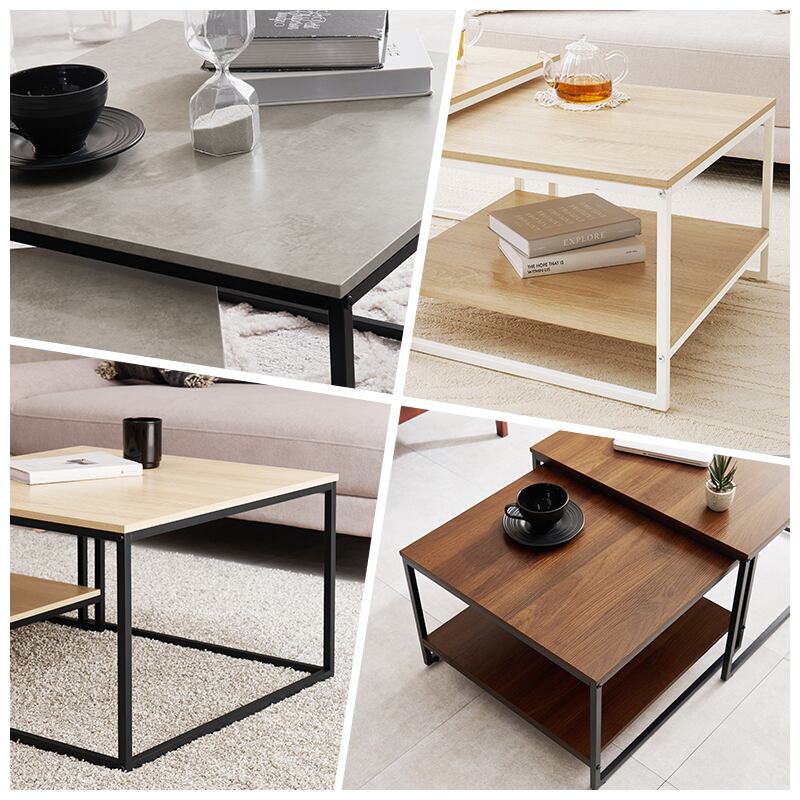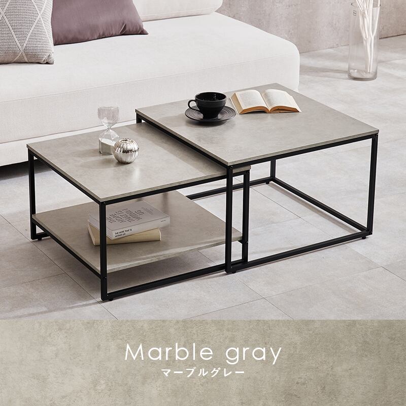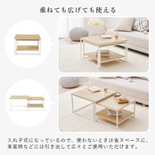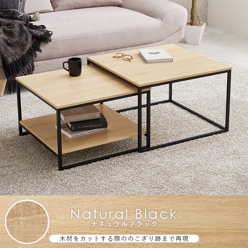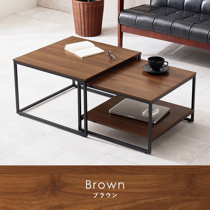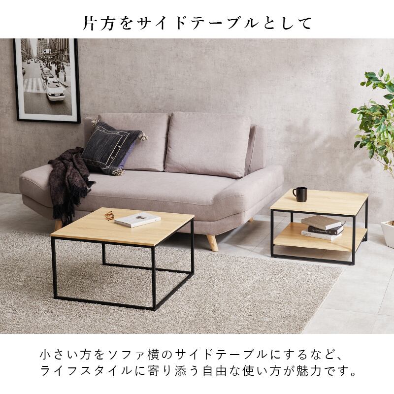 重ねたり、広げたり、別々に置いたりとレイアウトの自由度が高いネストテーブル。小テーブルは棚付きで読みかけの本などを置く収納スペースとしても使えます。