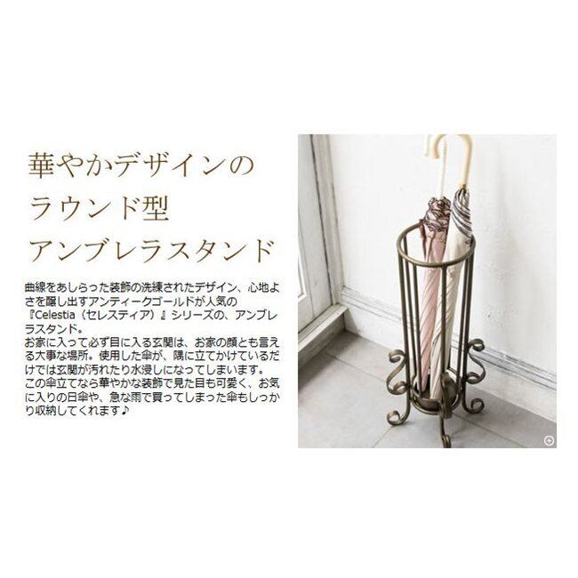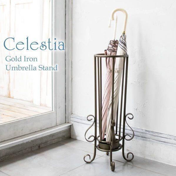 曲線をあしらった装飾の洗練されたデザイン、心地よさを醸し出すアンティークゴールドが人気の『Celestia(セレスティア)』シリーズの、アンブレラスタンド。
