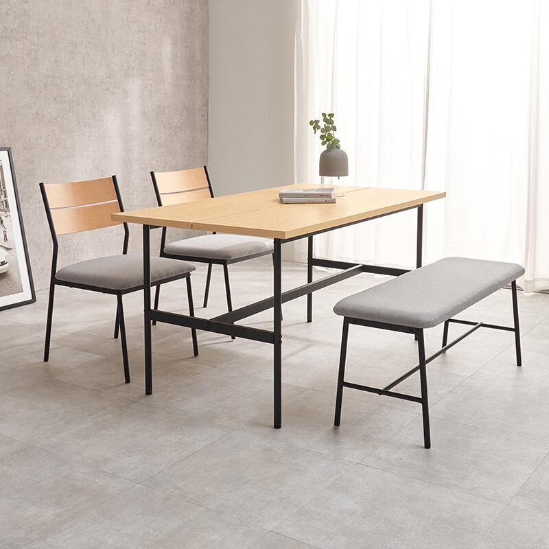 天板中央にスリットを入れ、スタイリッシュなデザインのダイニングテーブル。本格的な素材の柄が楽しめる天板とスチールの脚部を使った異素材の組み合わせ。