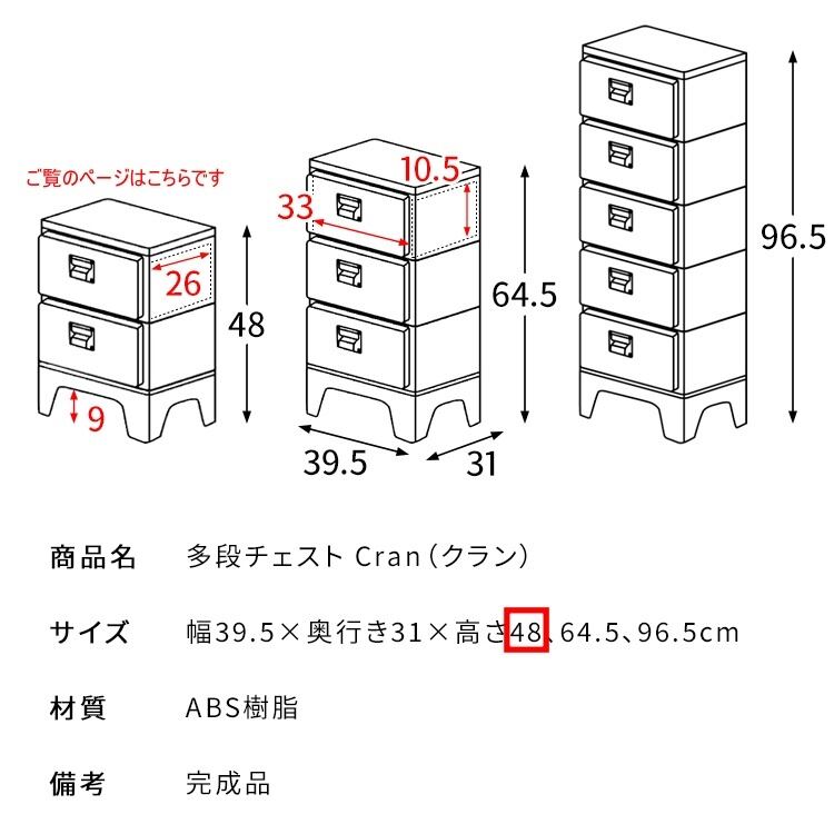 多段チェスト Cran(クラン) 2段タイプ CBN-H002