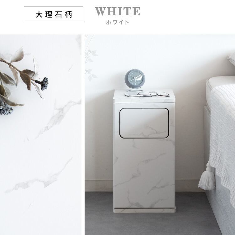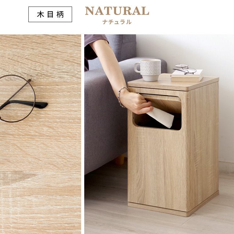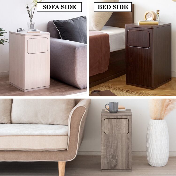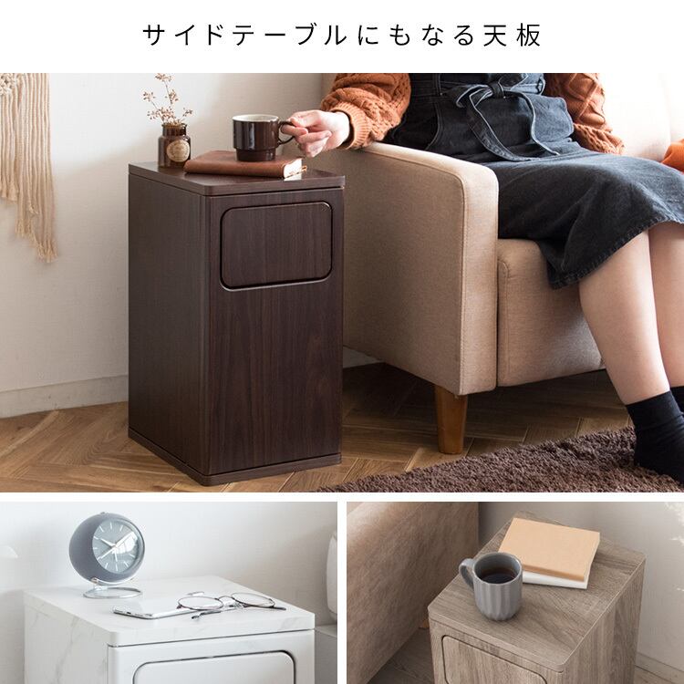 ニオイが漏れにくいプッシュ扉式でゴミ捨てがラクラク。コンパクトなのでソファやデスク横に置けてサイドテーブルになります。