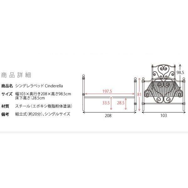 アイアンベッド Cinderella (シンデレラ) シングル フレームのみ BSK-919SS