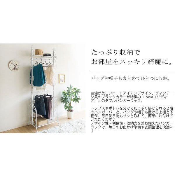 曲線が美しいロートアイアンデザイン、ヴィンテージ風のブラックカラーが特徴の『Lydia(リディア)』のダブルハンガーラック。