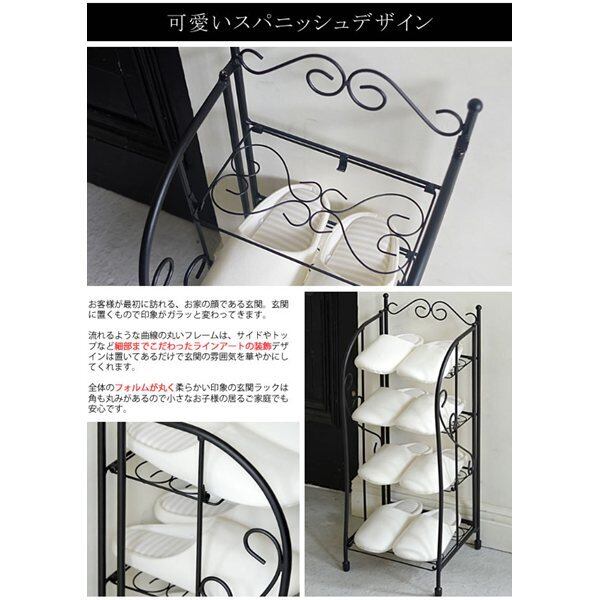 スパニッシュテイストで細い曲線のラインアートが可愛い『DEL SOL(デル・ソル)』シリーズの玄関ラック。スリッパラックやシューズラックとしてお使いいただけます。