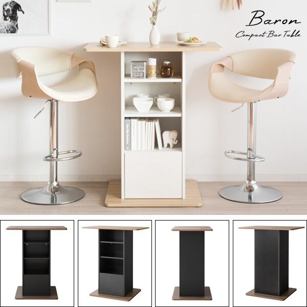 ちょっとしたカフェ使いやバータイムにピッタリなバーテーブル『Baron(バロン)』。省スペースなコンパクトサイズでリビングやダイニングの空いた空間に置けます。