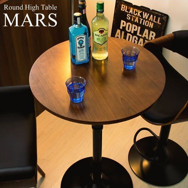径60cmの大きめなラウンド型で、高さ90cmとバーチェアやハイスツールにちょうど良いハイテーブル『MARS(マルス)』。
