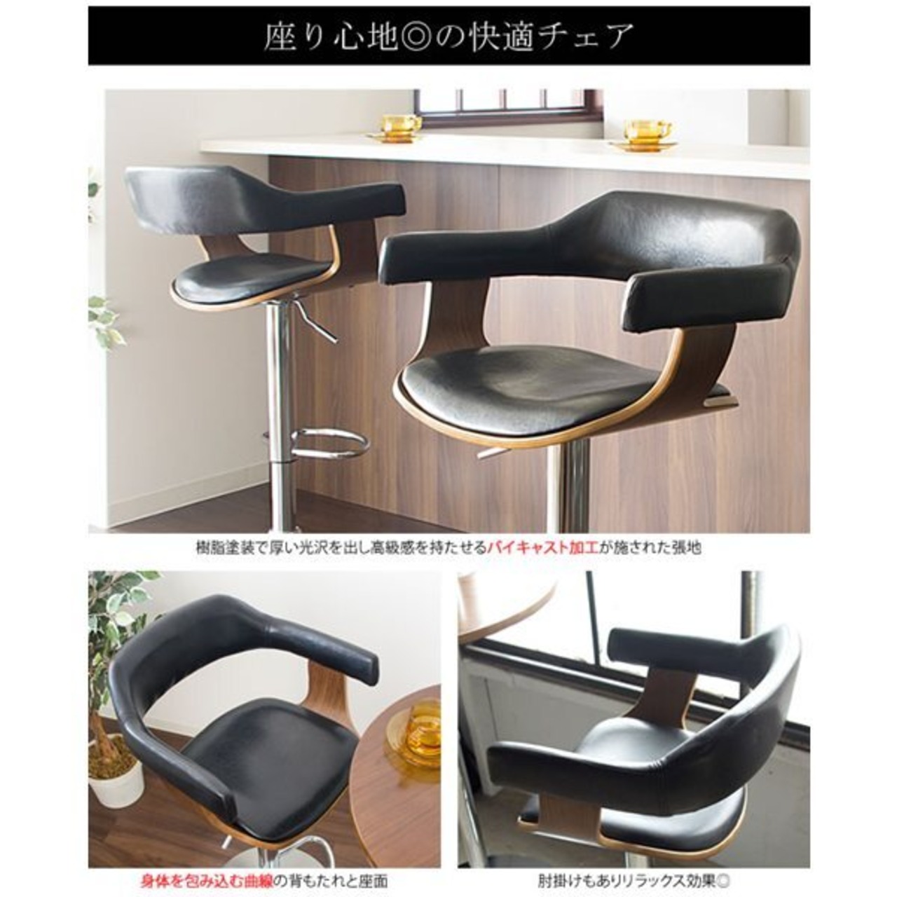 木目が美しい天然木突板を使用した曲げ木フレームに、クッション性のある肌触りの良い合成皮革を背もたれと座面に配したバーチェアは座り心地もバツグン♪