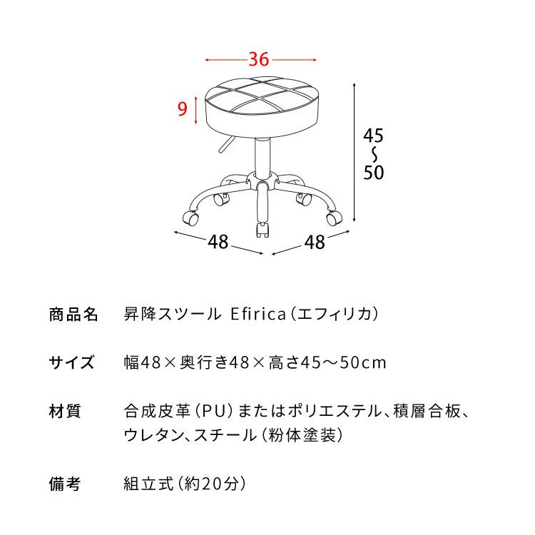 趣あるキルティング座面がおしゃれなラウンド昇降スツール『Efirica(エフィリカ)』。360度どこからでも座れるラウンドデザイン、クッション性に優れた座り心地、簡単昇降機能やキャスター付きで機能性・デザイン性に優れております。
