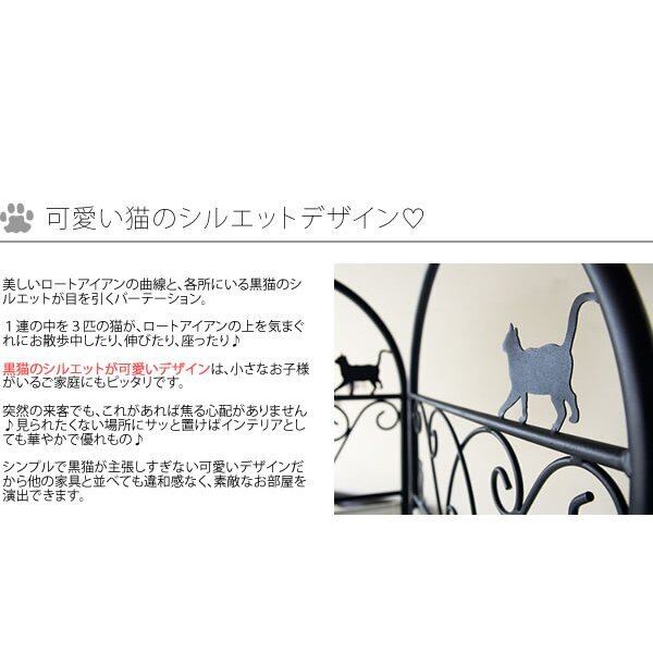 曲線の美しい黒いロートアイアンの上を、気まぐれに歩いたり座ったりしている猫のシルエットが可愛い、黒猫シリーズの「猫のパーテーション」。