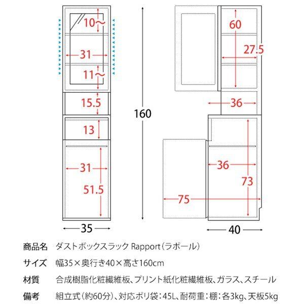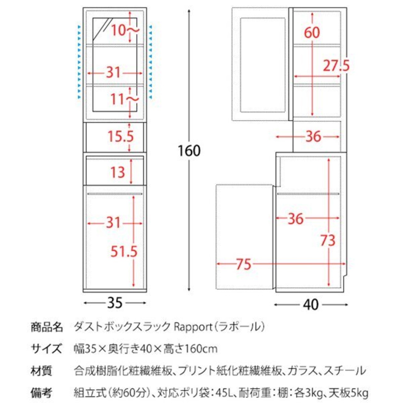 ダストボックスラック Rapport(ラポール) 食器棚 プッシュ式ゴミ箱 省スペース設計 KC-F301