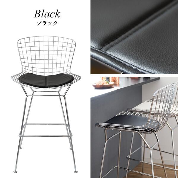 ハリー・ベルトイア ワイヤーハイスツール カウンターチェア レザークッション PCK-020N