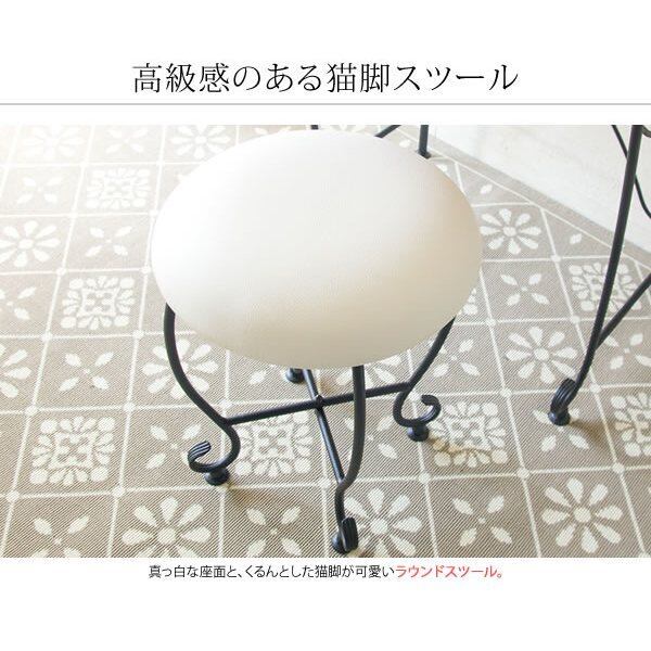 美しい曲線を描くフレームと可愛い猫脚、高級感のある張地が印象的なデザインのスツール。お部屋を華やかに演出します。
