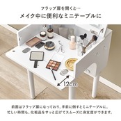 LEDの女優ライト付きドレッサー。天板を閉じれば簡易デスクに早変わり。一緒に使えるスツールがセットで付いています。