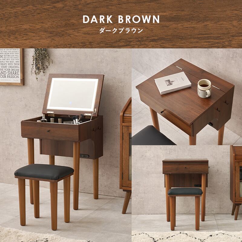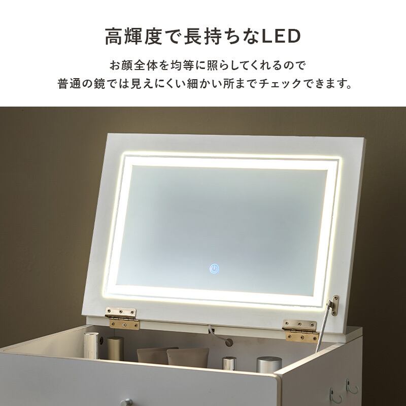 LED女優ライト付きドレッサー 幅50cm スツールセット コンセント付き MD-6755