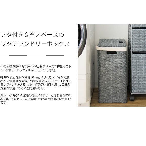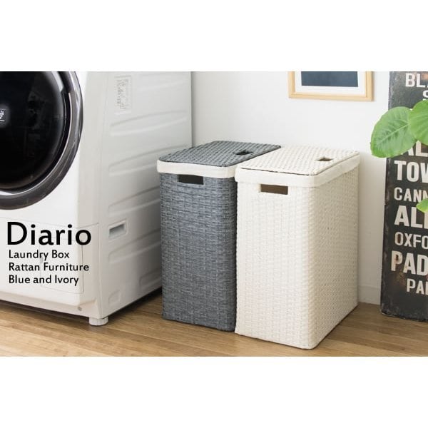中の衣類を隠せるフタ付きの、省スペースで軽量なラタンランドリーボックス『Diario(ディアリオ)』。