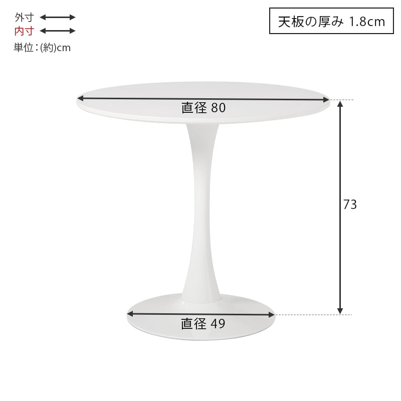 カフェテーブル 直径80cm BT-8659 ホワイトインテリア 円形 曲線美 メラミン 可愛い 1本脚 傷に強い 汚れに強い 傷防止
