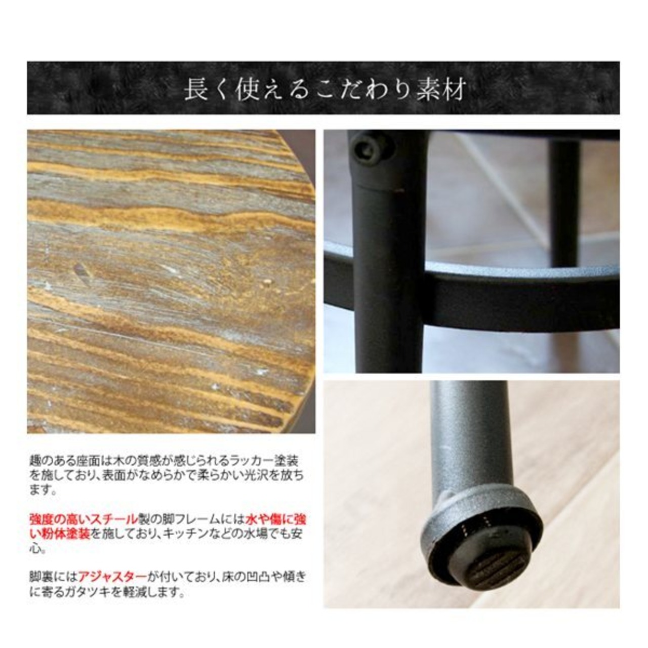 天然木パイン材(ラッカー塗装)、スチール(粉体塗装)