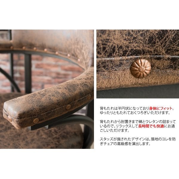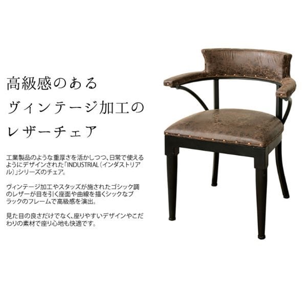 チェア INDUSTRIAL(インダストリアル) CH-A29 ダイニングチェア デスクチェア リビングチェア ヴィンテージ加工 ゴシック調 レザー ブラック アジャスター付き