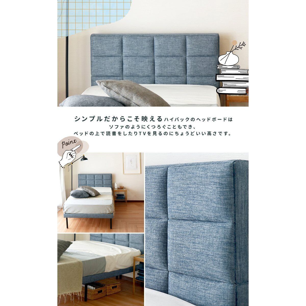 ファブリックベッド ロッフル Roffle セミダブルサイズ フレームのみ jx44714 ファブリック素材 コンパクト収納 引っ越しに便利 すのこベッド ハイバック ウレタン ブルー ナチュラル