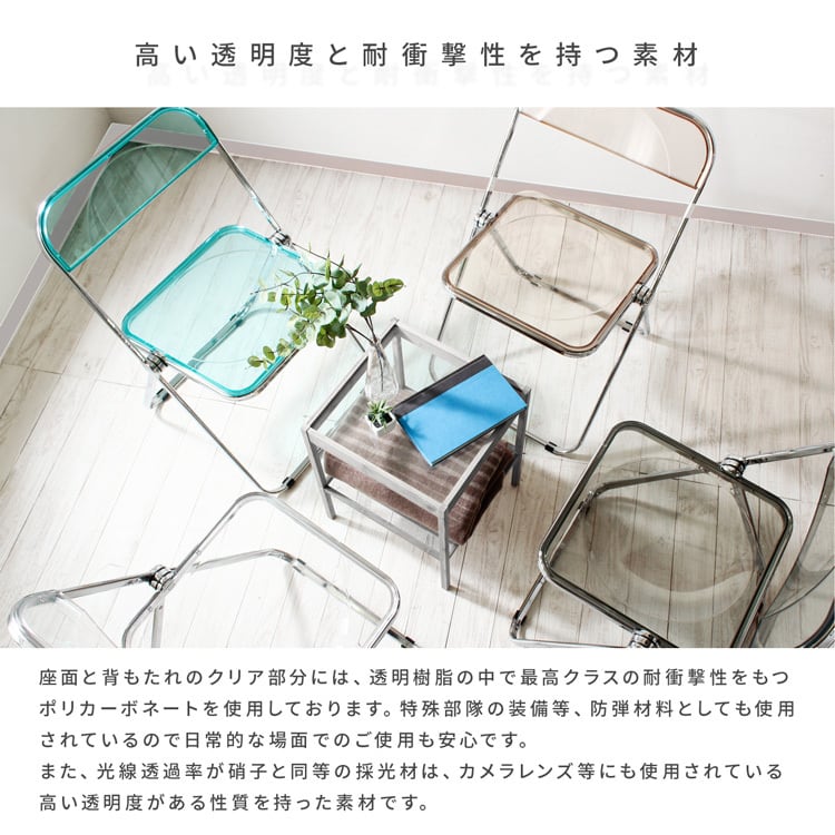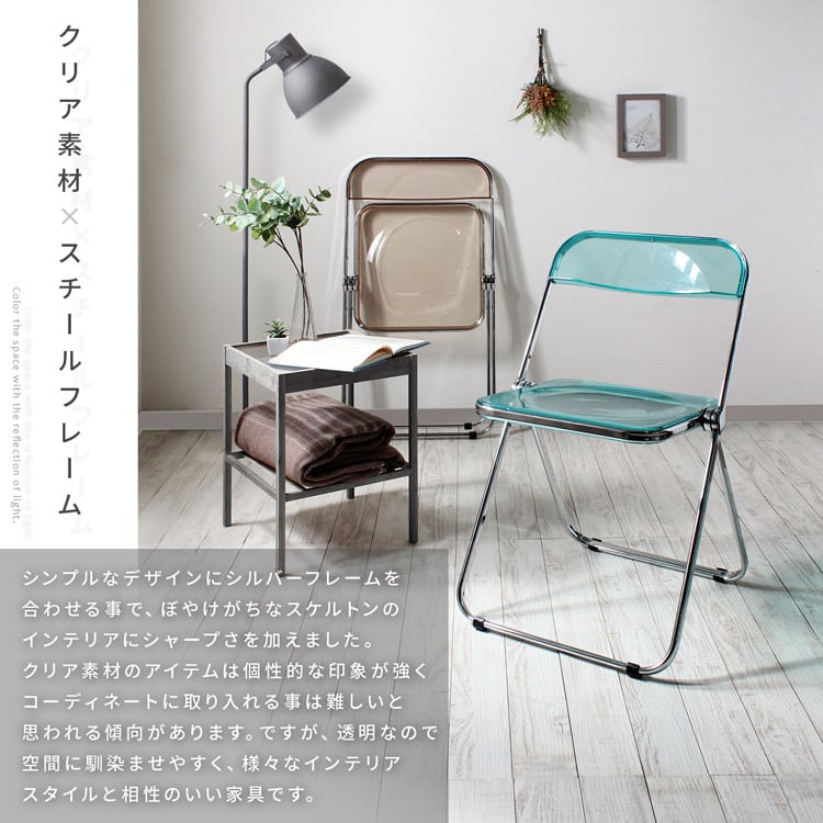 スケルトン折りたたみチェア cleirier クレーリエ sh81141 完成品 スケルトンチェア リビングチェア ダイニングチェア デスクチェア ワークチェア 折りたたみ式 シルバーフレーム ポリカーボネート クロームメッキ