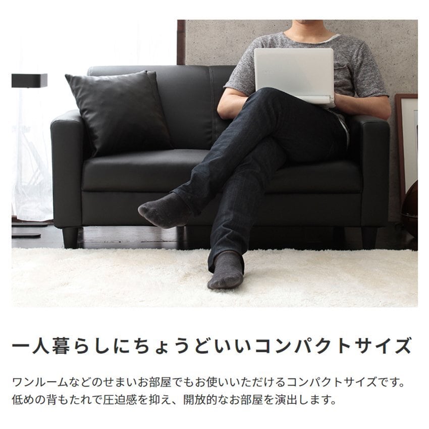 レザー調コンパクトソファ2P デイジー 同色クッション2個 jx80652 幅113.5cm PVC 合成皮革 シンプル ステッチ コンパクト ひとり暮らし 脚部取り外し可 ローソファ ウレタン ウェービングベルト ブラック アイボリー