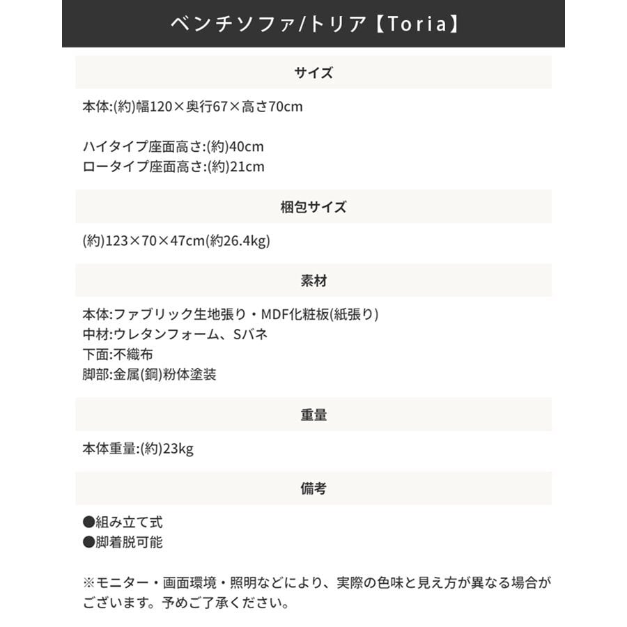 ■ファブリックベンチソファ/トリア【Toria】