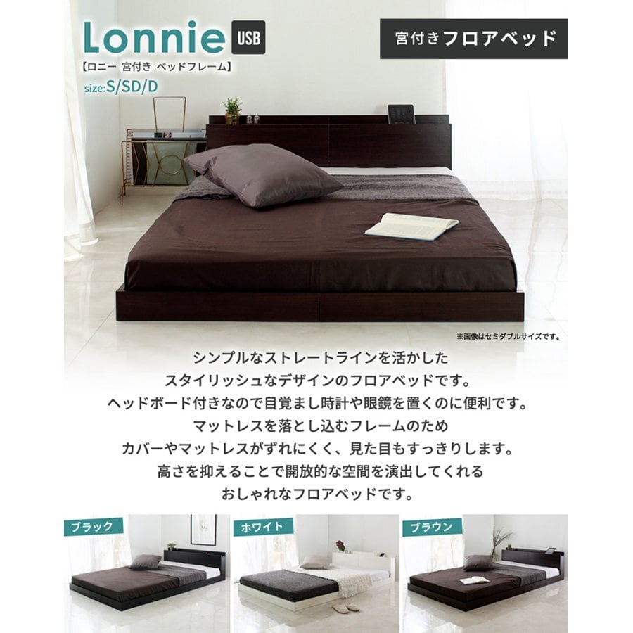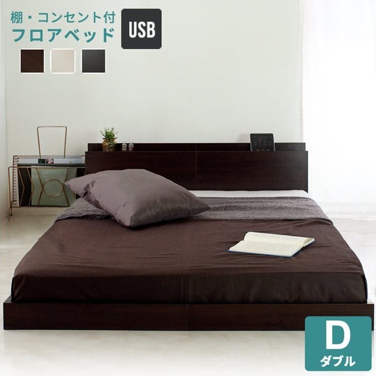 宮付きフロアベッド Lonnie USB ロニーUSB ダブルサイズ フレームのみ jx44675 フロアベッド ロースタイル ローベッド USBポート付き コンセント ブラック ホワイト ブラウン