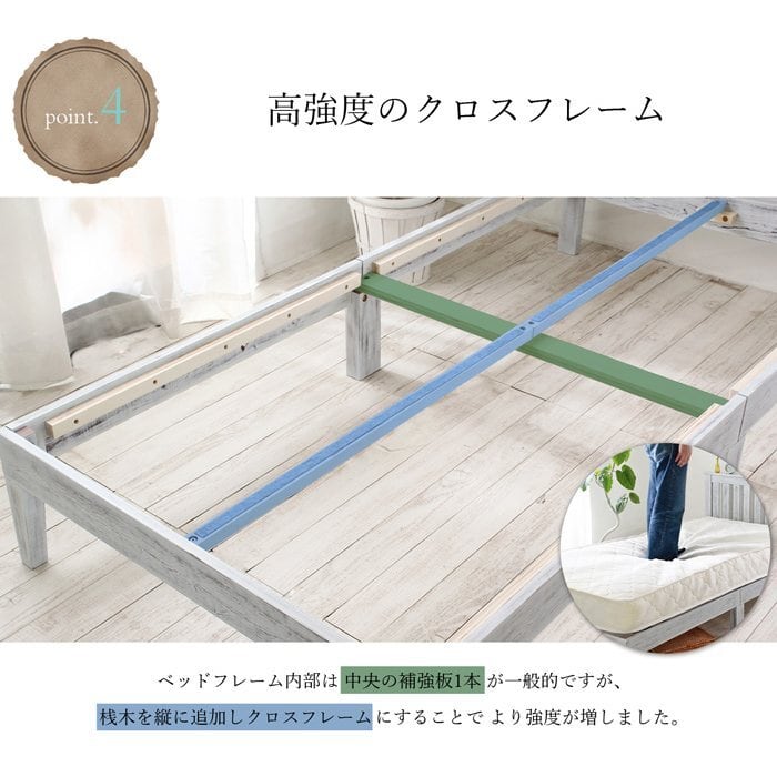 ヘッドボード付きすのこベッド Charles シャルル シングルサイズ フレームのみ xc44533 ホワイト アンティーク調 シャビーシック 縦格子 すのこ 天然木 パイン材