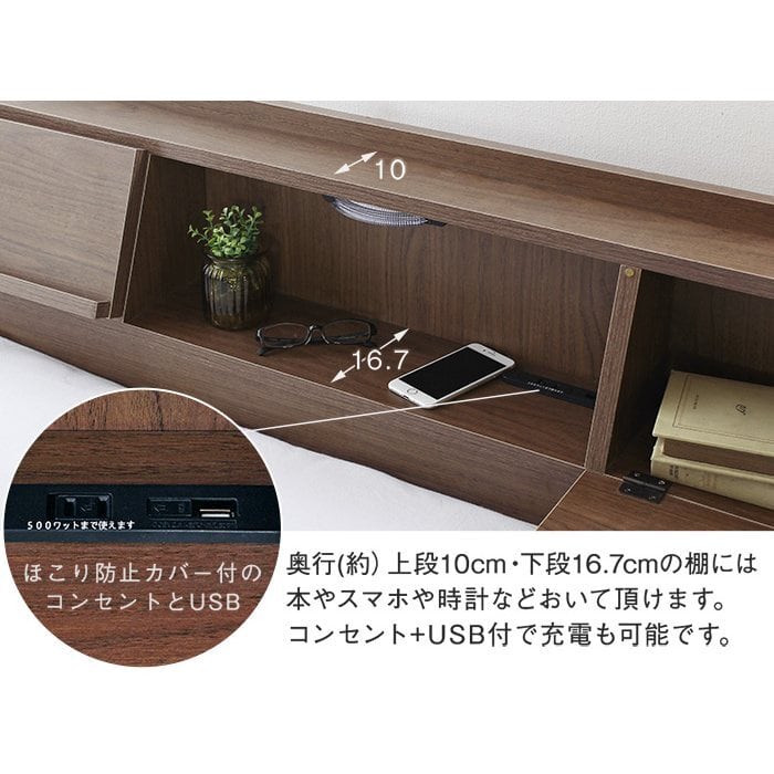 多機能フラップデザインベッドフレーム FLAP フラップ シングルサイズ フレームのみ cy44493 LEDライト USB コンセント キャスター付き引き出し ウォールナット ブラック ホワイト