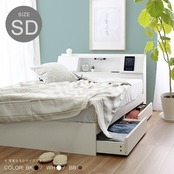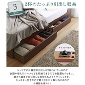 サイドには2杯のキャスター付き引き出しが付いた多機能たっぷり収納ベッドです。