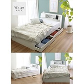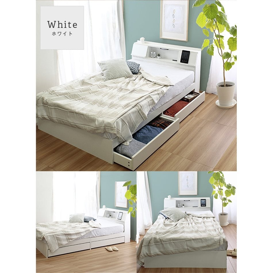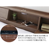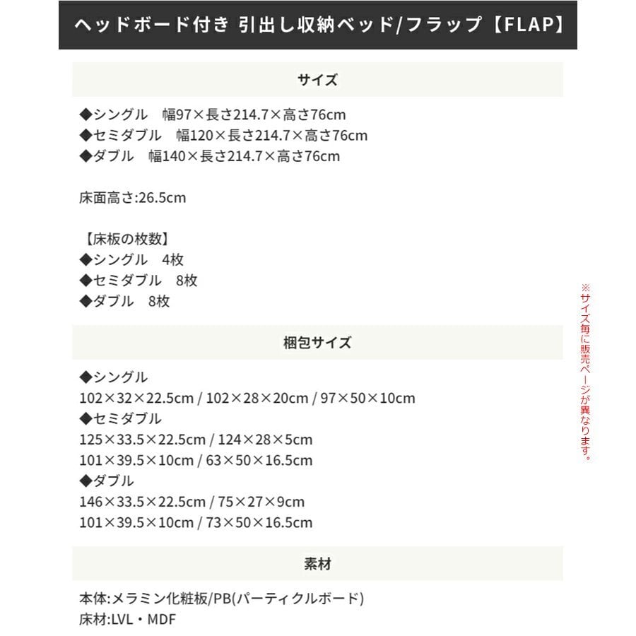 多機能フラップデザインベッドフレーム FLAP フラップ セミダブルサイズ フレームのみ cy44494 LEDライト USB コンセント キャスター付き引き出し ウォールナット ブラック ホワイト
