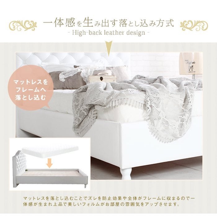 ハイバックレザーデザインベッド Othello オセロ セミダブルサイズ グレーマットレスセット ajx44644-ri14014 エレガント クラシカル キルティング ホテルライク スノコ 頑丈設計 ポケットコイル
