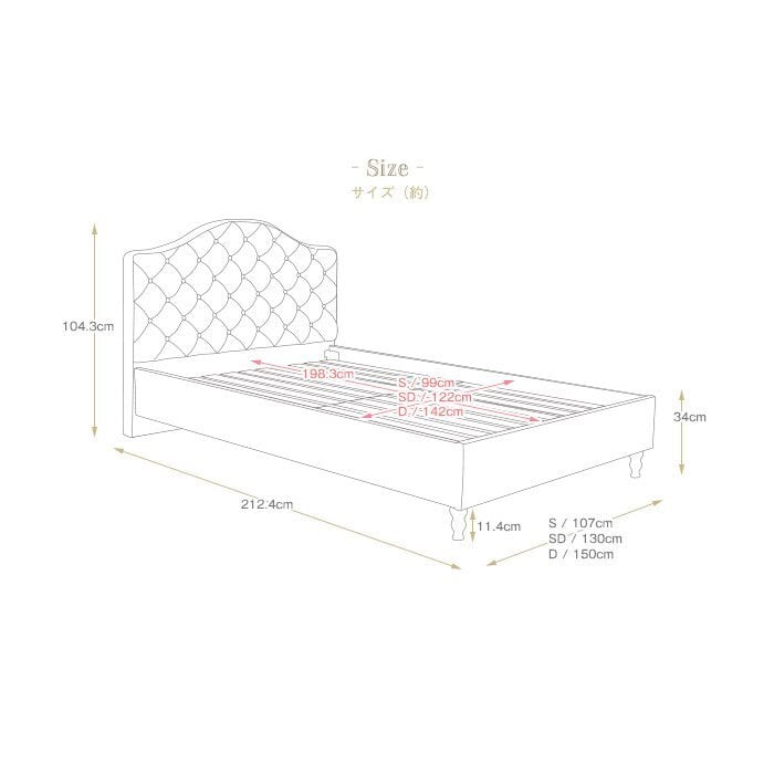 ボタン止めのキルティングパターンがエレガントな雰囲気のベッドフレームとグレーのカラーが印象的なポケットコイルマットレスのセットです。