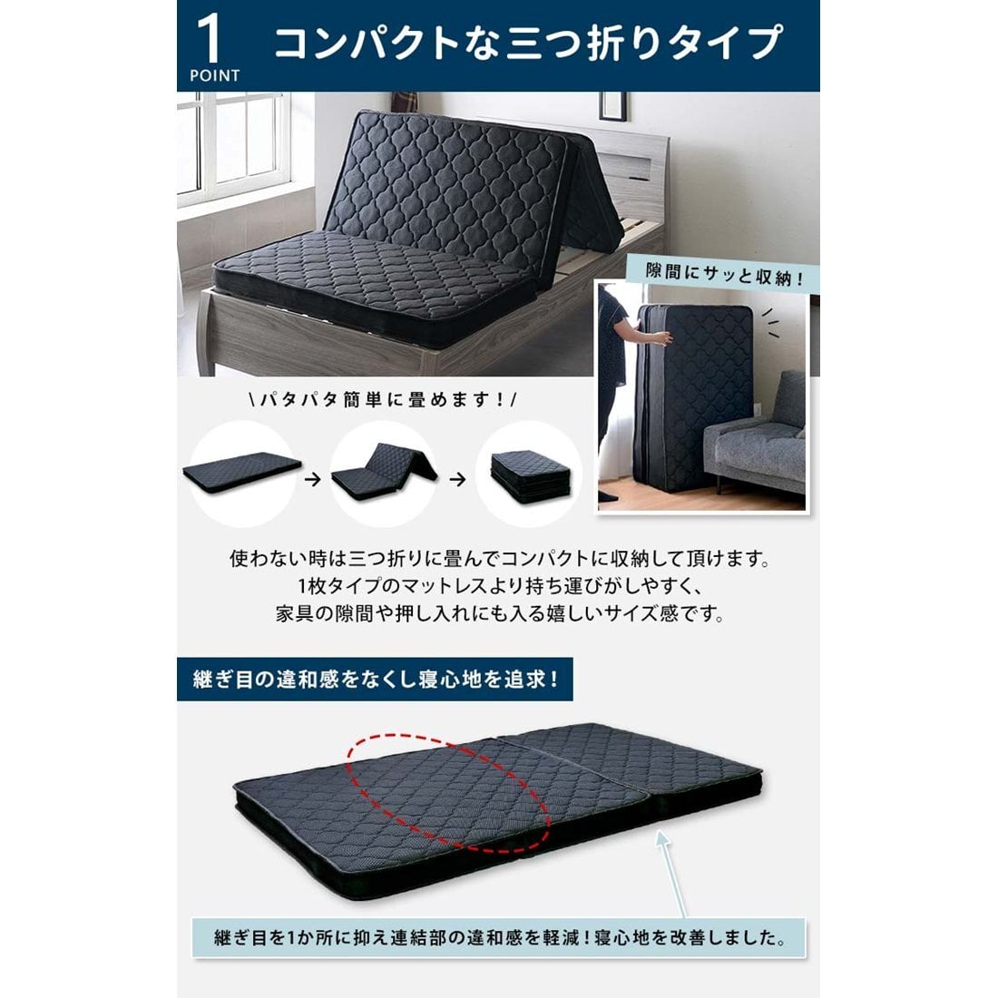 厚み10cm 三つ折りポケットコイルマットレス