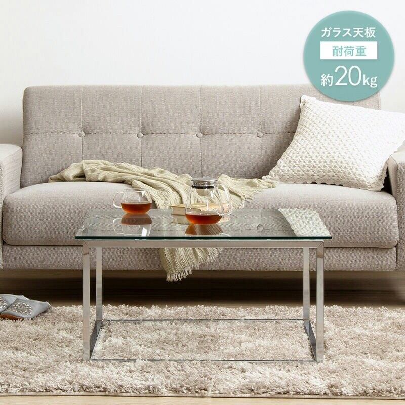 正方形ガラステーブル 幅70cm IW-527 強化ガラス クロムメッキ シルバーフレーム モダン アジャスター付き