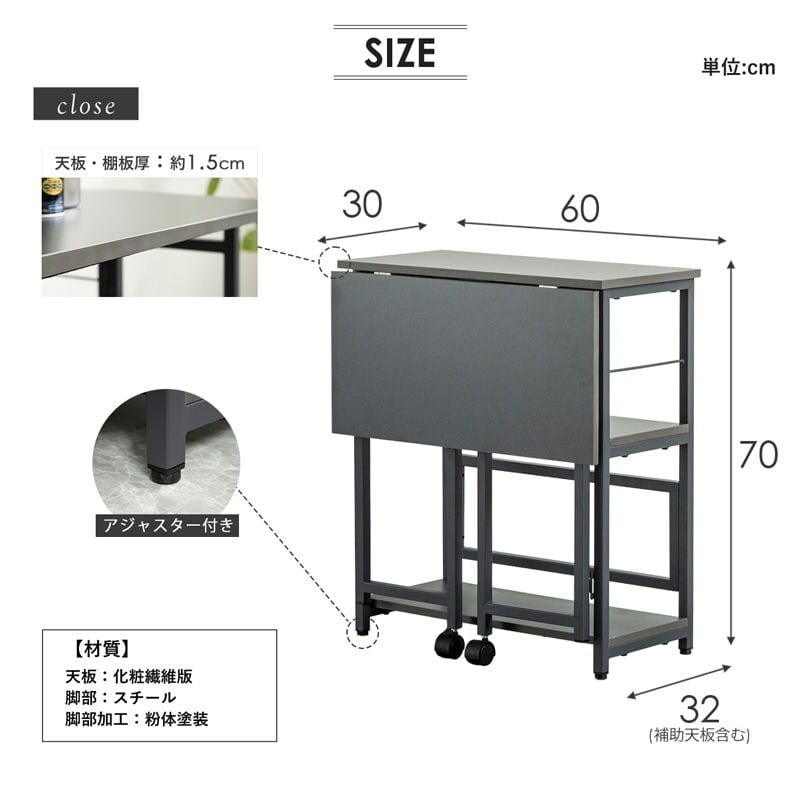 折りたたみ時:幅60×奥行30×高さ70cmブ 展開時:幅60×奥行60×高さ70cm