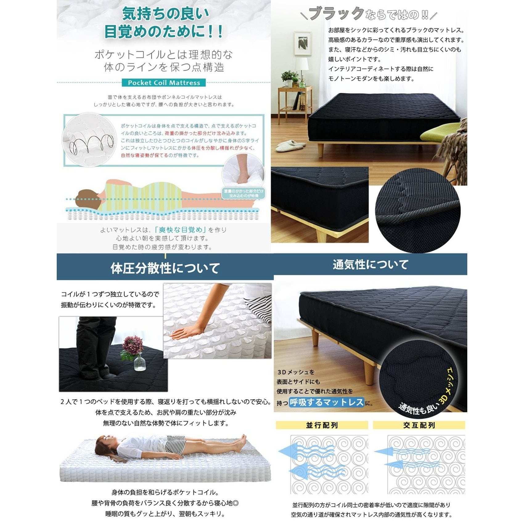 ポケットコイルマットレス【ブラック(やや硬め)】セットのページです。
