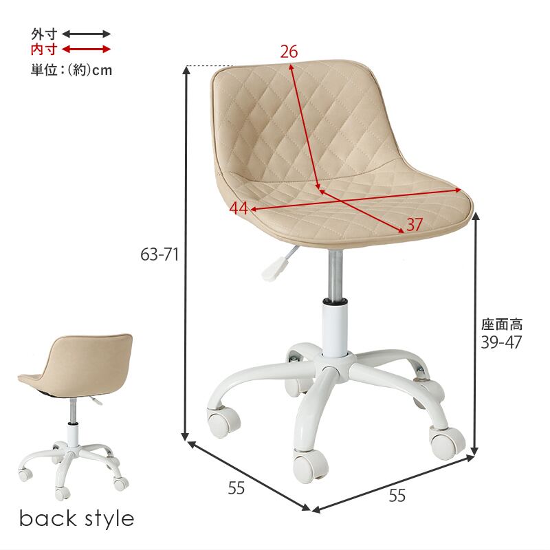 (約)幅55×奥行55×高さ63~71×座面高39~47cm