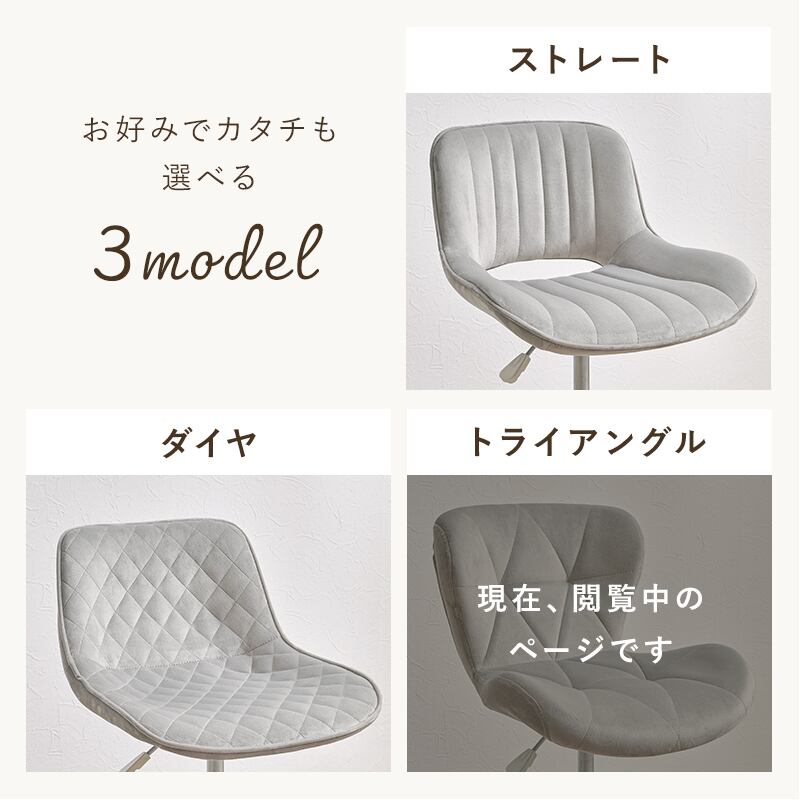 かわいいホワイトの足元に、遊び心のある三角模様の座面を合わせたチェア。背もたれや座面はやわらかくカーブしており身体の丸みに優しくフィットします。小柄な人にも嬉しい低め設計。