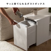ソファの横でマグカップやリモコンを置ける天板、本や雑貨を収納できる収納棚、リビングで出たゴミをサッと捨てられるゴミ箱が一つになった便利なアイテムです。