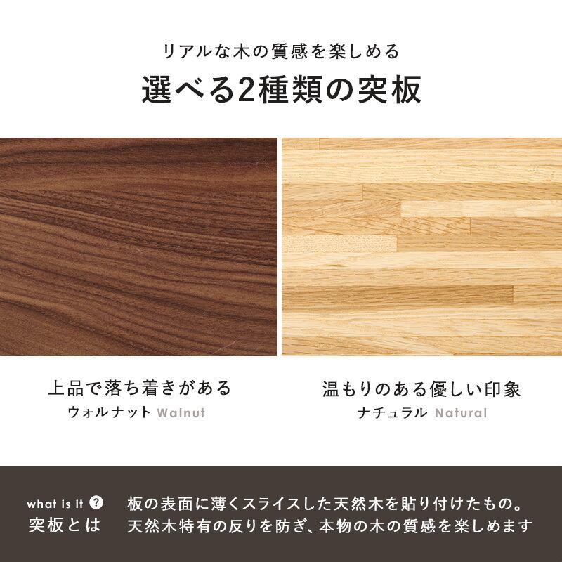 天板:天然木化粧繊維板(オーク突板,ウォルナット突板)・UV塗装