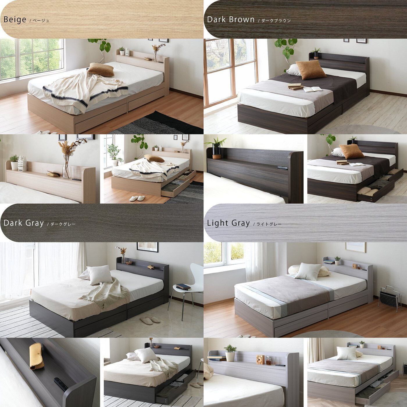 棚・コンセント付き収納ベッド RUES ルース シングルサイズ グレーポケットコイルマットレスセット acy44113-ri14013gy 引き出し コンセント付き 実用的 多機能 ヘッドボード 高強度 3Dメッシュ生地 通気性