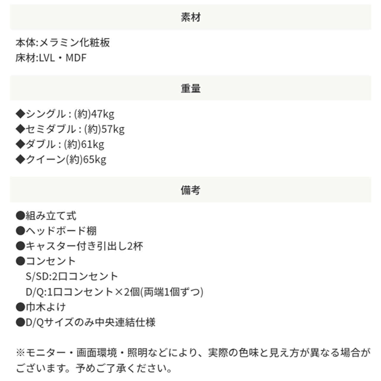 棚部分にはコンセントが付いており、枕元でのスマホやタブレットの充電に便利です。