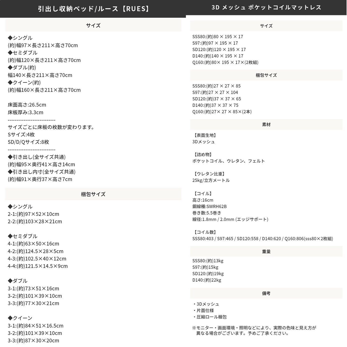棚・コンセント付き収納ベッド RUES ルース セミダブルサイズ グレーポケットコイルマットレスセット acy44114-ri14014gy 引き出し コンセント付き 実用的 多機能 ヘッドボード 高強度 3Dメッシュ生地 通気性